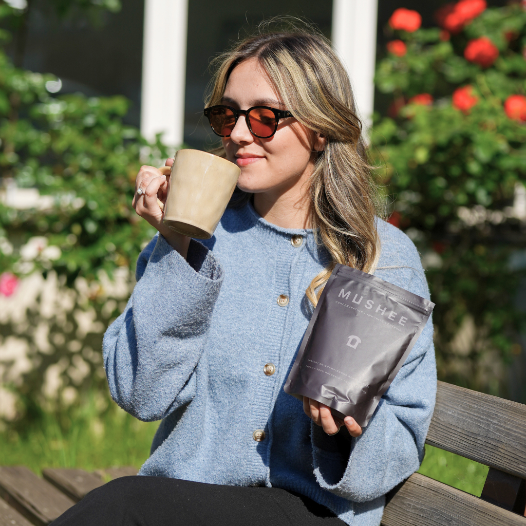 Mushee ist ein mildes, nicht anregendes Getränk, das den ganzen Tag über anhaltende Energie liefert. Viele Kunden berichten von weniger Herzklopfen, einem ruhigeren Gefühl und verbesserter Konzentration – ganz ohne die Unruhe, die manchmal mit herkömmlichem Kaffee einhergeht.